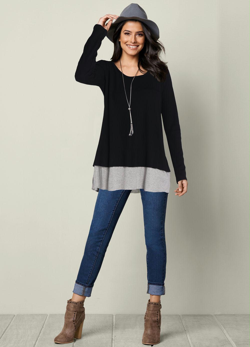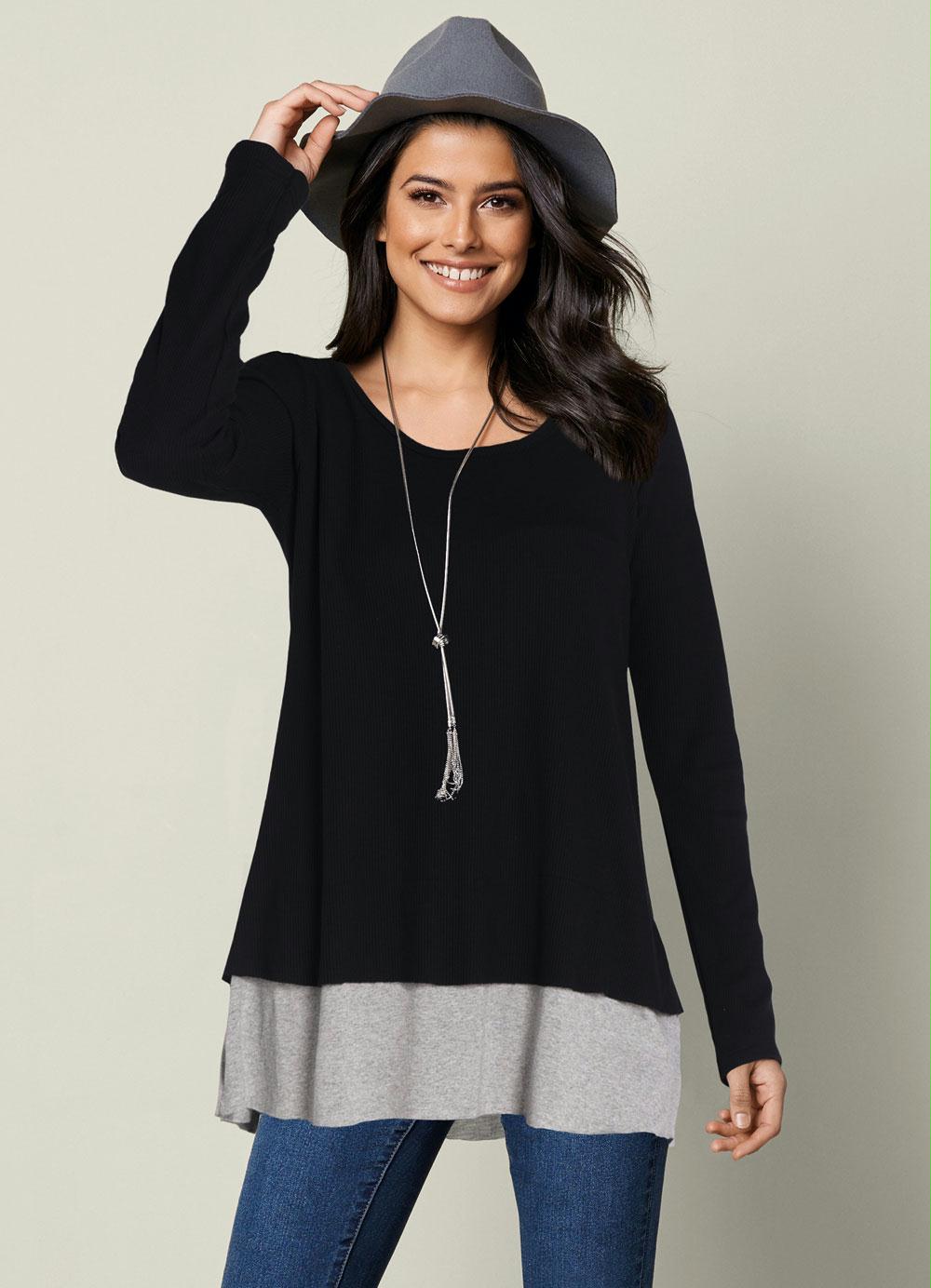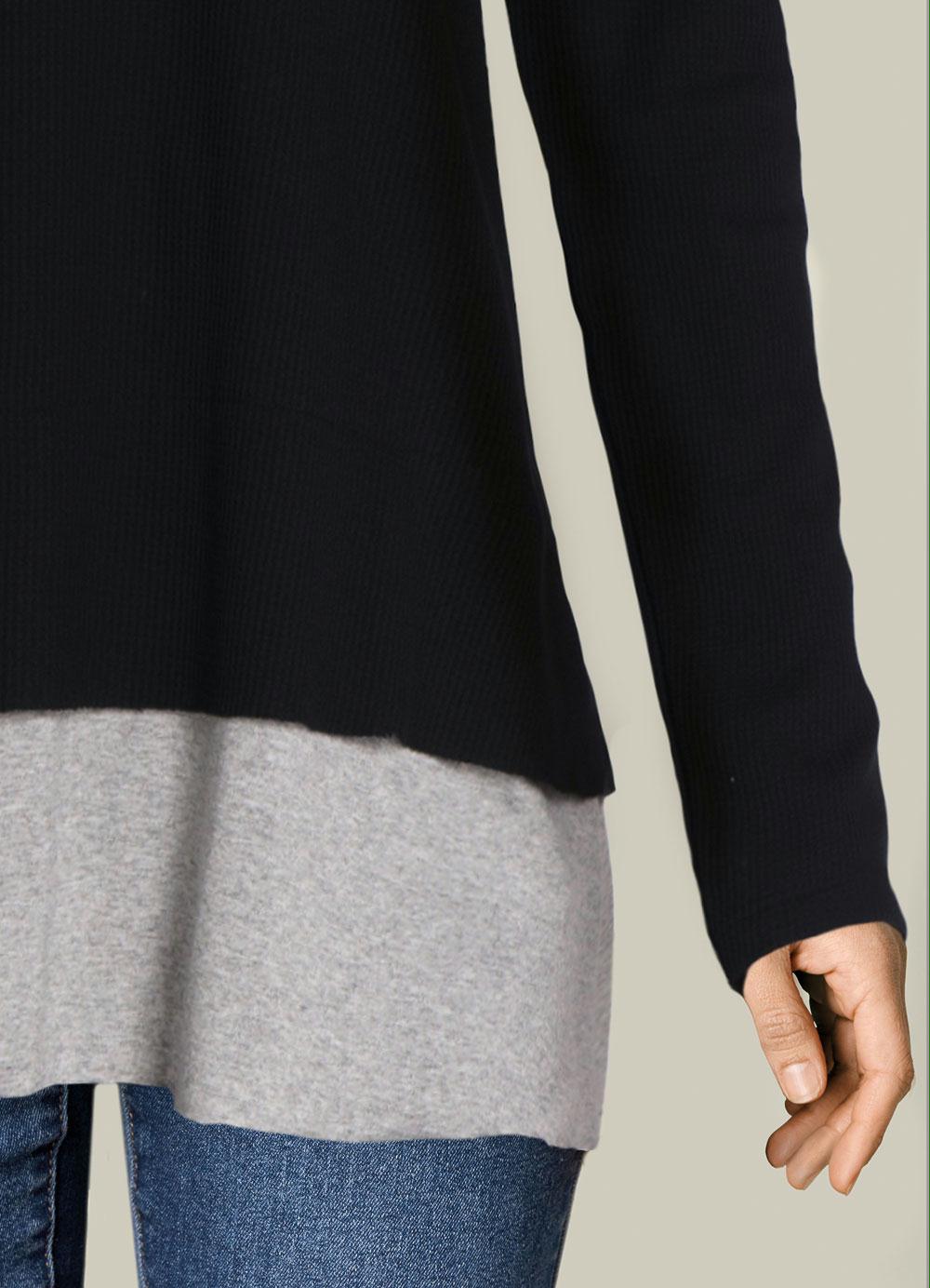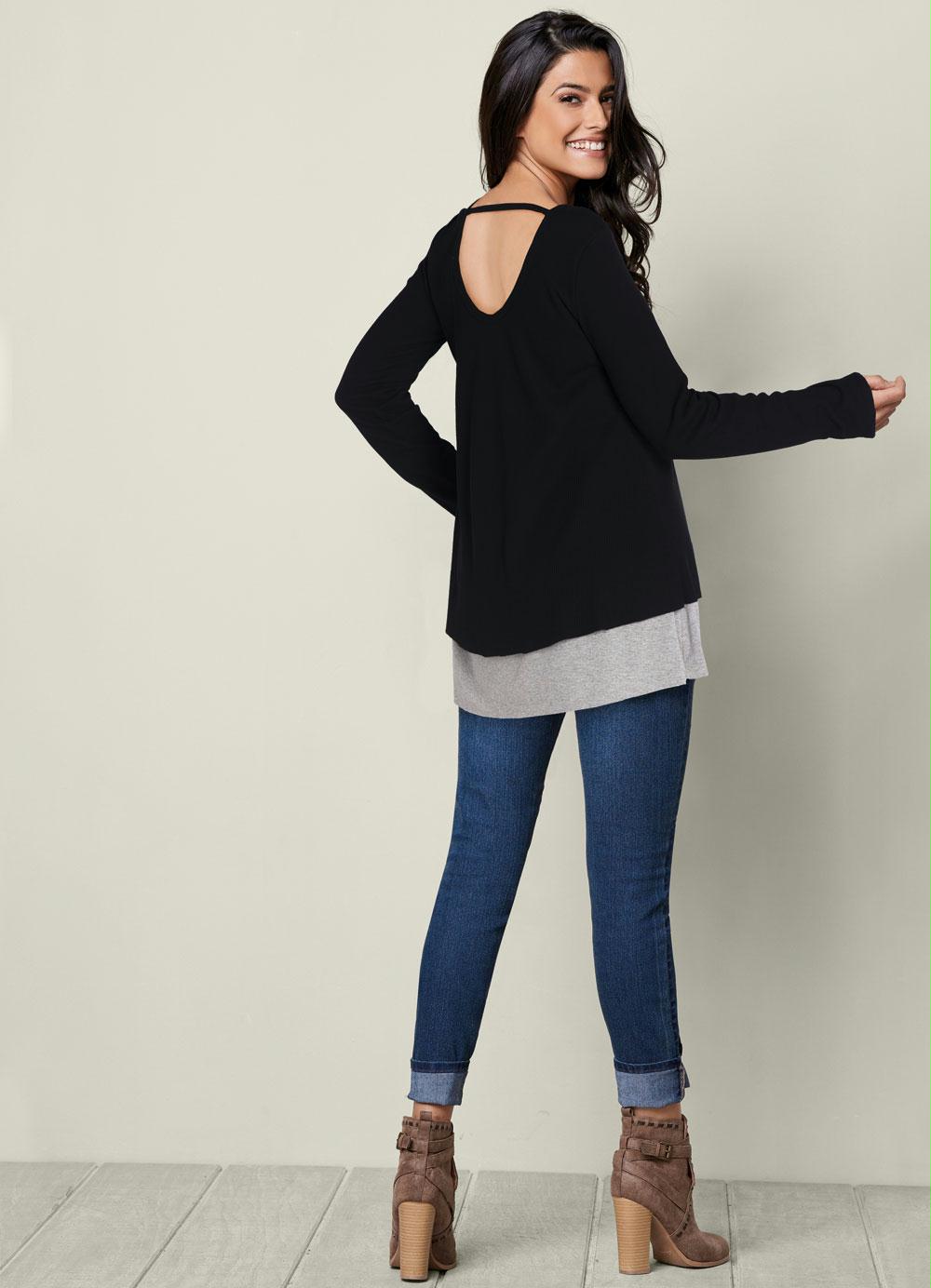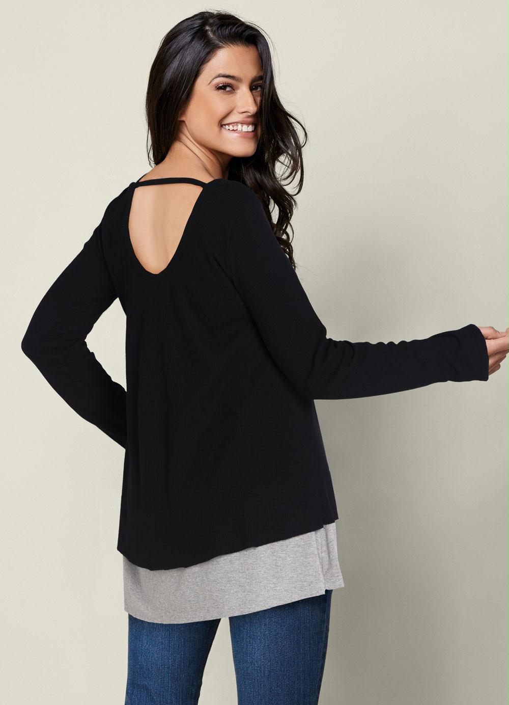 bonprix – Blusa com Abertura Costas Preta e Cinza